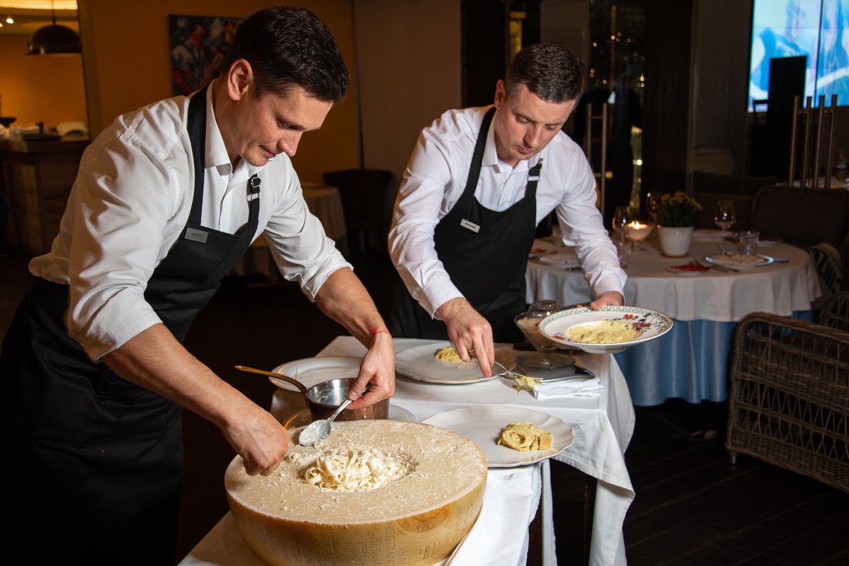 Мы довольно часто посещаем этот ресторан, но в этот раз мы остались не очень довольны. У нас был большой стол на 6 персон и нас обслуживали очень долго. Я люблю в этом ресторане пасту, которая готовится в сыре. Я за этим блюдом и пришла в ресторан, но в этот раз оно было сильно соленое. Отдала его другому человеку, он пасту съел, и ему было нормально. Возможно, что это мои такие вкусовые предпочтения. Обычно у нас всё прекрасно здесь, но в это раз все было не как обычно.
